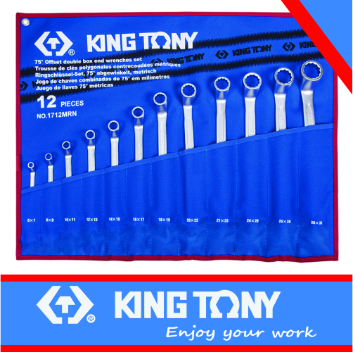 75° Offset Ring Wrench Set – 12 PCs Series: 1970 Sizes: 6×7 – 8×9 – 10×11 – 12×13 – 14×15 – 16×17 – 18×19 – 20×22 – 21×23 – 24×26 – 25×28 – 30×32 Weight (Kg): 3.78