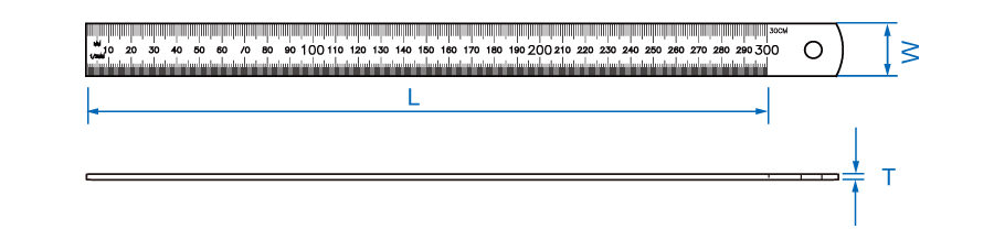 Stainless Ruler Stainless steel deeply etched for easy reading. Dual scale: metric & imperial marking (mm/inch). Length (mm): 300 Length (inch): 12 W (mm): 23.7 T (mm): 1.0 Weight (g): 65