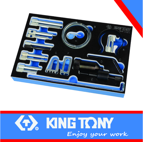 The set includes special flywheel tools and cam/crankshaft timing pin